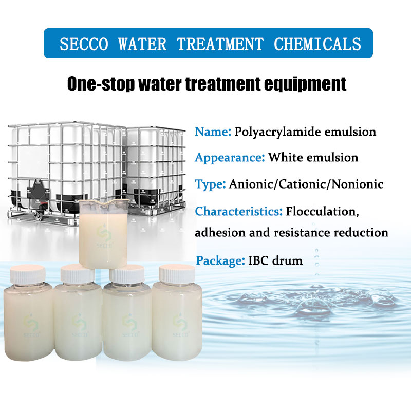 Polyacrylamide emulsion ແມ່ນຖືກກະກຽມໂດຍການກະຈາຍຫຼື polymerization emulsion reverse, ເຊິ່ງເປັນຮູບແບບຂອງແຫຼວ polyacrylamide ທີ່ມີຢູ່. ນອກຈາກຄຸນລັກສະນະຂອງ flocculants polyacrylamide ທີ່ແຂງ, ຜ່ານຕ່ອງໂສ້ໂມເລກຸນຂອງກຸ່ມຂົວເພື່ອດູດຊຶມສານທີ່ແຂງທີ່ຖືກໂຈກຢູ່ໃນອະນຸພາກນ້ໍາ, emulsion ສາມາດສ້